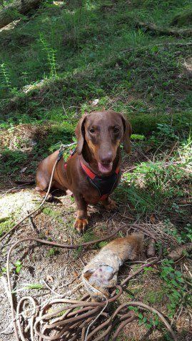 Tinys Sohn begleitet Herrchen immer zur Jagd. Dieses tolle Bild zeigt, wie er das Stück in Besitz nahm. Anschließend absolvierte er noch eine erfolgreiche Nachsuche.